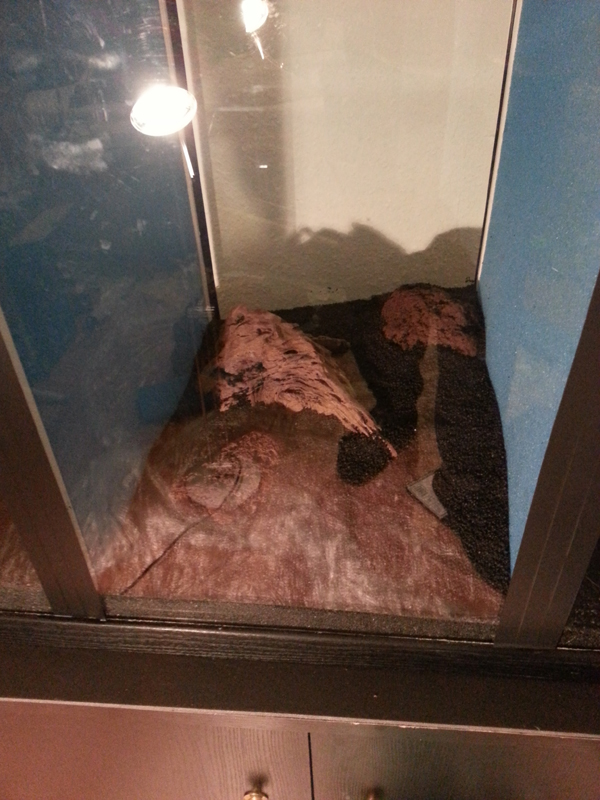 Jetzt gehts auch schonmal an die grundlegende Einrichtung. Eigentlich dachte ich, dass ich viel mehr Platz zur Verfügung habe, aber da das AQ nur 40cm tief ist und 50cm hoch ist das mit dem Platz doch ein wenig enger geworden. Aber seht her was daraus geworden ist. Leider hatte ich nicht mehr soviel Licht und das ganze spiegelt ziemlich: