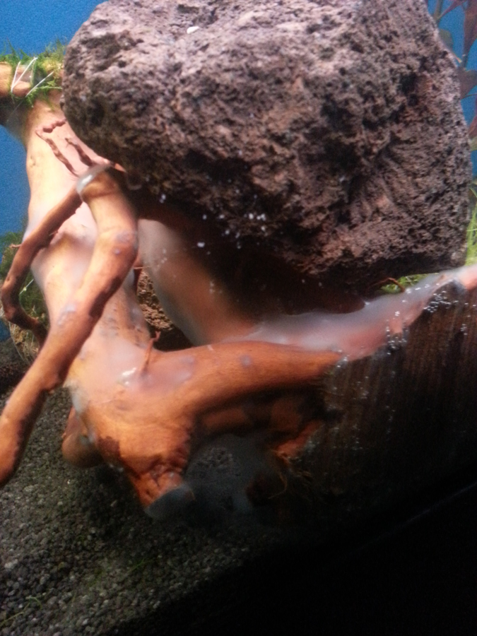 Zur Dekoration des AQ stehen mir einige Lavasteine, 1x Mangrove (muss mir noch eine für das 3. Abteil besorgen) und nochmal Holz (Name vergessen) zur Verfügung. Als Bodengrund wird Quartzkies von Dennerle verwendet.