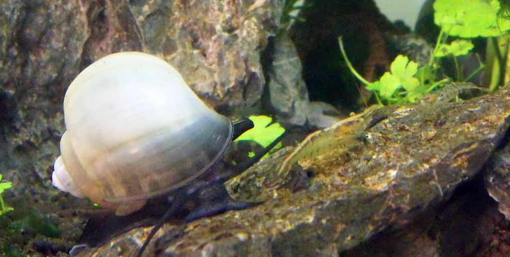 Weiterhin ging es allen Tierchen gut – nur eine der Schnecken machte mir etwas Sorgen, da ihr Häuschen doch stark angegriffen war. Aber erst mal schneckte sie mit ihren Freunden friedlich durch´s Becken. Und auch unsere beiden Monster machten sich gut. Eine Häutung lief bereits völlig problemlos. Leider graben sich die Frechdachse in der Felsenhöhle immer wieder unter den einen Stein … muss also immer mal wieder das Soil wieder etwas drunter schieben. Vor etwa einer Woche fand ich dann die „Problemschnecke“ tot im Becken … nicht schön :( .