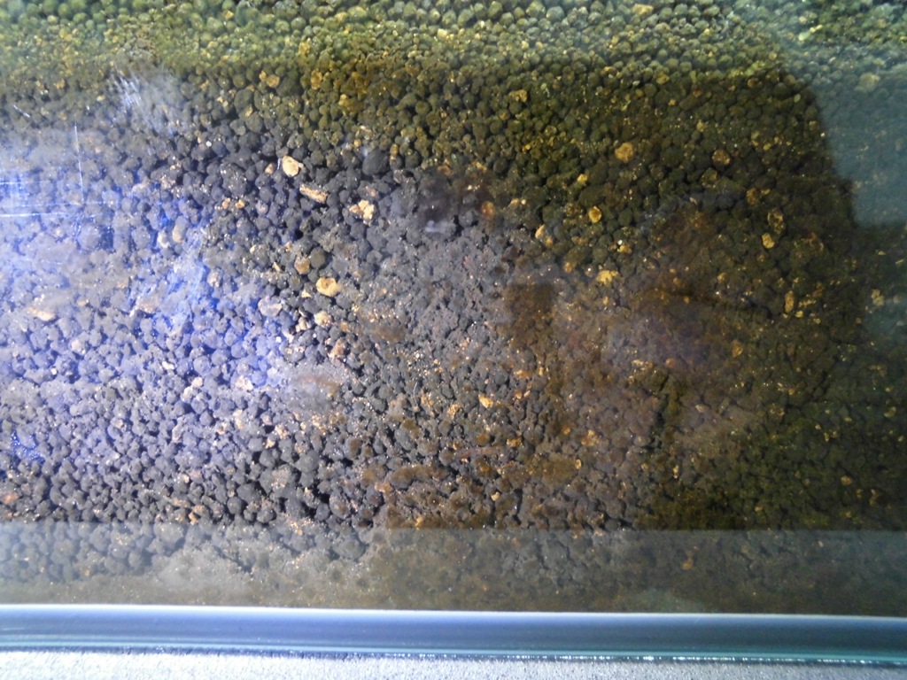 Ok, das ist jetzt nicht extrem, trotzdem sieht man deutlich, das sich schon einiges angesammelt hat. Ich persönlich nehme als Schichtdicke des Bodens überhaupt nur noch ca. 1cm, da kann man auch schnell mal absaugen und/oder nachlegen, falls irgendeine Ecke zuschmoddert. Hier auf Deinen Bildern kann man zumindest nicht ausschließen, das im Boden schon "ungute" Dinge stattfinden. Über die Zeit rieselt das ganze übriggebliebene Futter da natürlich schön rein... trotzdem nicht in Aktionismus verfallen. Erstmal weniger füttern und schauen, was passiert. Dabei Nitrat, Phosphat, die Mulmbildung und natürlich die Tiere selbst im Auge behalten.