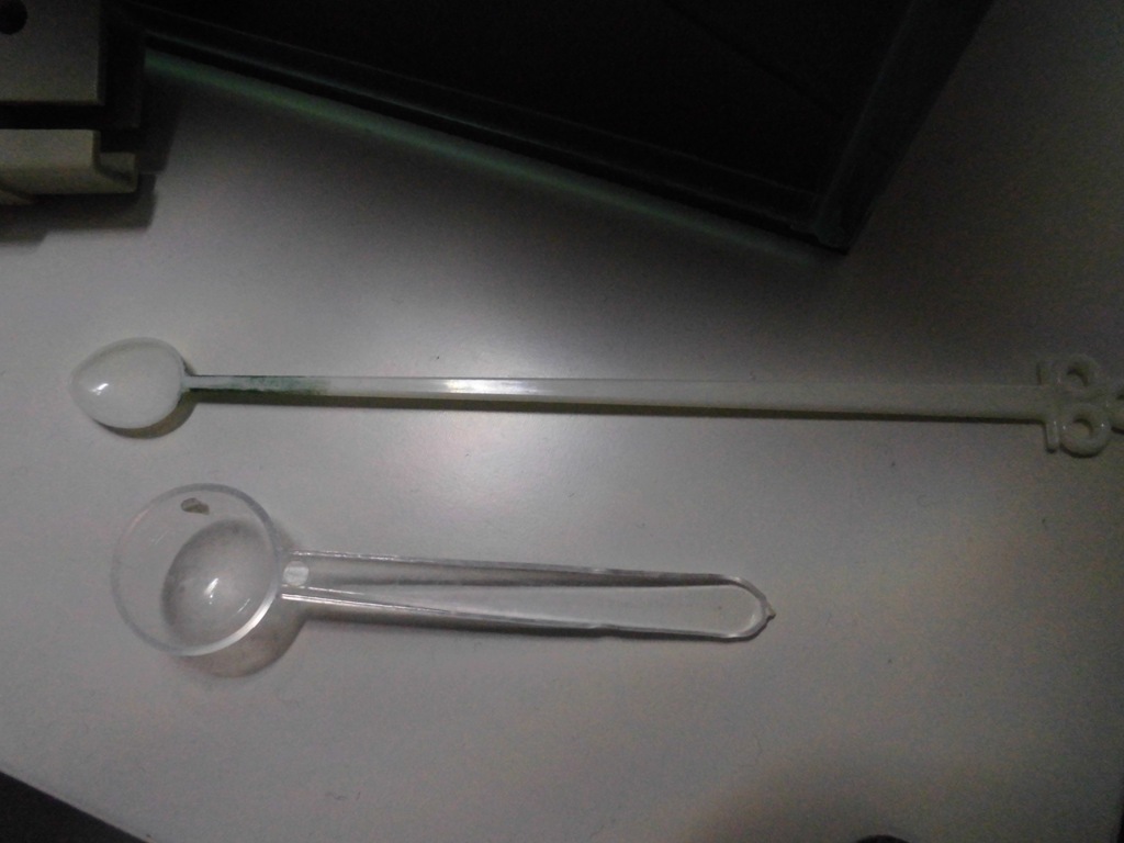 Ich werde es dann jetzt so machen, dass ich von Biozyme und Polytase jeweils einen kleinen Löffel (den oberen auf dem Löffelbild) hinzugebe.