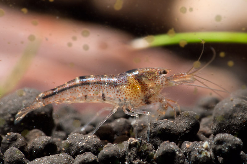 Hier ist mal eine von meinen Sulawesi-Inlandsgarnelen. Welche es genau ist, weiß ich aber nicht. Ich halte sie in Sulasalz 7,5. Da sie jetzt aber bald Gesellschaft von Yellow Fire Neon bekommen, will ich auf das neue Salz KH/GH+ (oder wie das heißt) umstellen.
