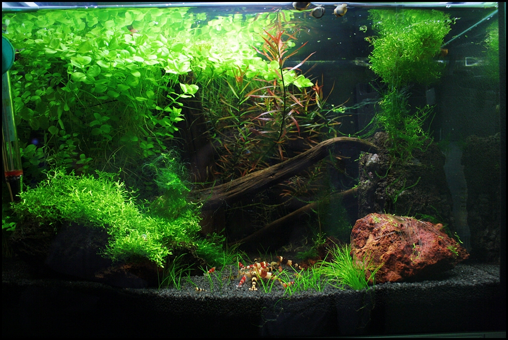 Es sieht etwas sehr wüst aus aber den Garnelen gefällt es so total und sind seeehr aktiv.