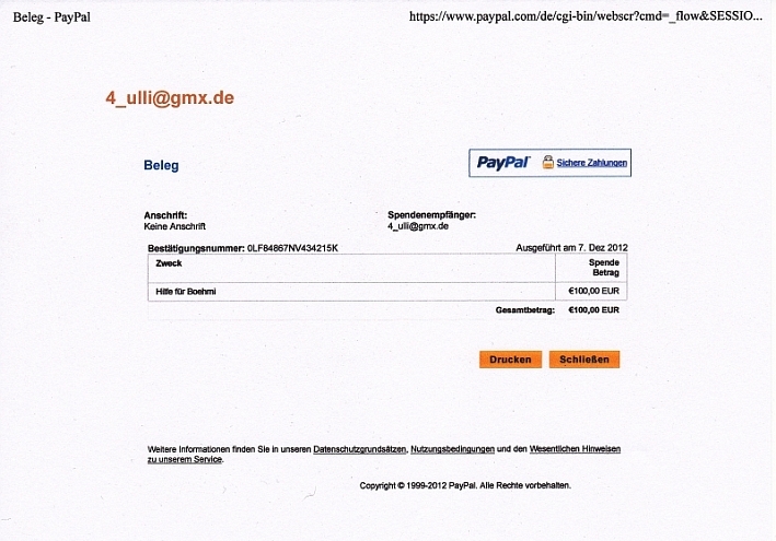 Auktion beendet und Geld auf Ulis PayPal Konto überwiesen