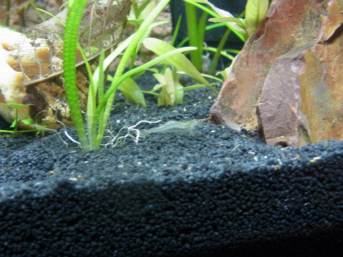 Hier ein Bild, ist nicht so toll, die sind zu schnell. Man sieht, sie ist so groß wie die Amanos. Ist das so eine wie du jetzt hast?