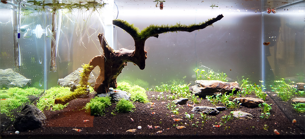 Beleuchtet wird über jeweils 2 30 Watt LED Spots mit 6500K (nicht 10K, da hat mir das Weiss der Tiere net gefallen)