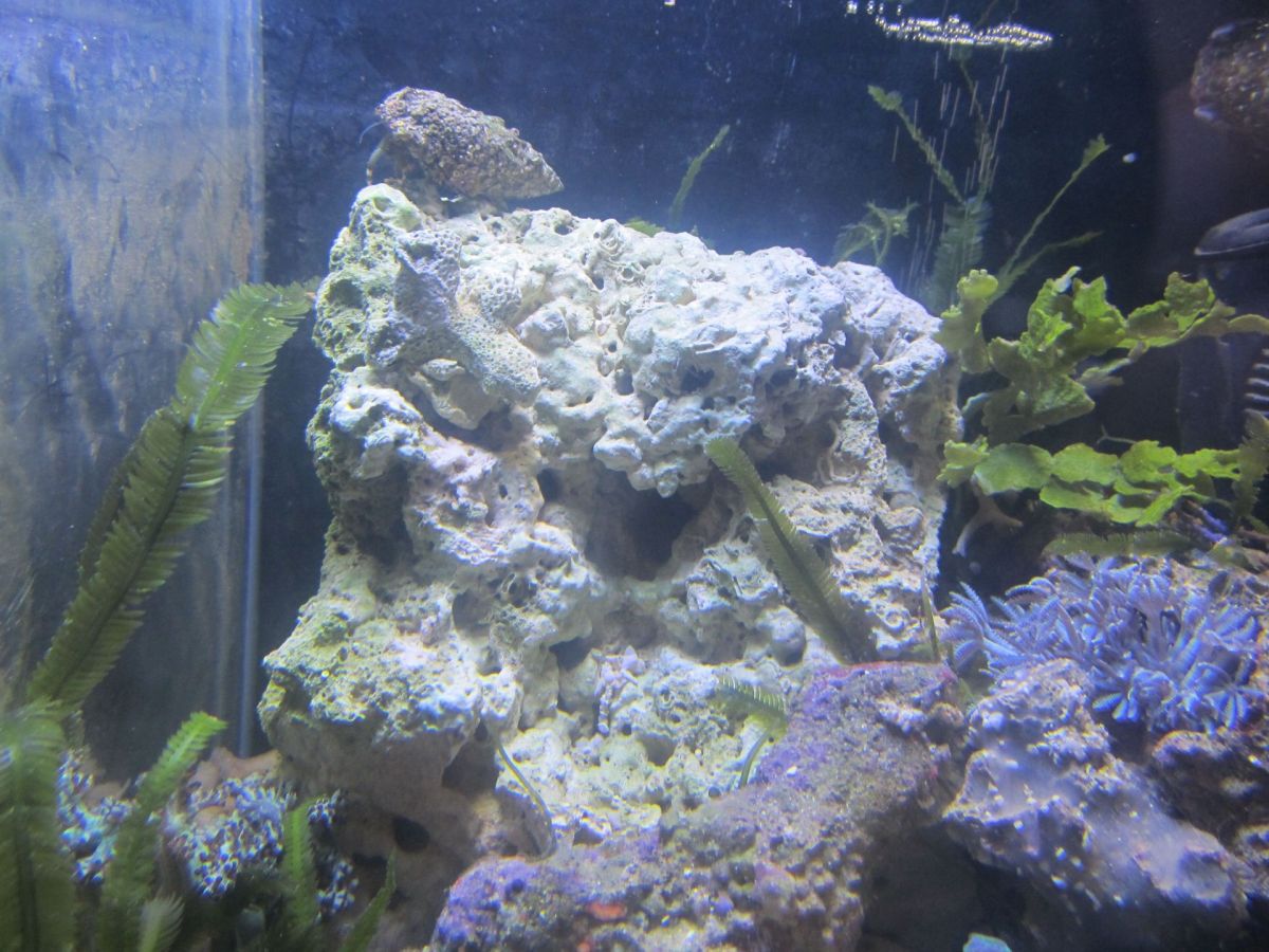 Der Stein war ein sogenannte Stück Totgestein, Ich war gleich fasziniert von den schönen Korallenspuren an der einen Seite. Er zog zu meinen Futtergarnelen in ein kleines Brackwasserbecken.