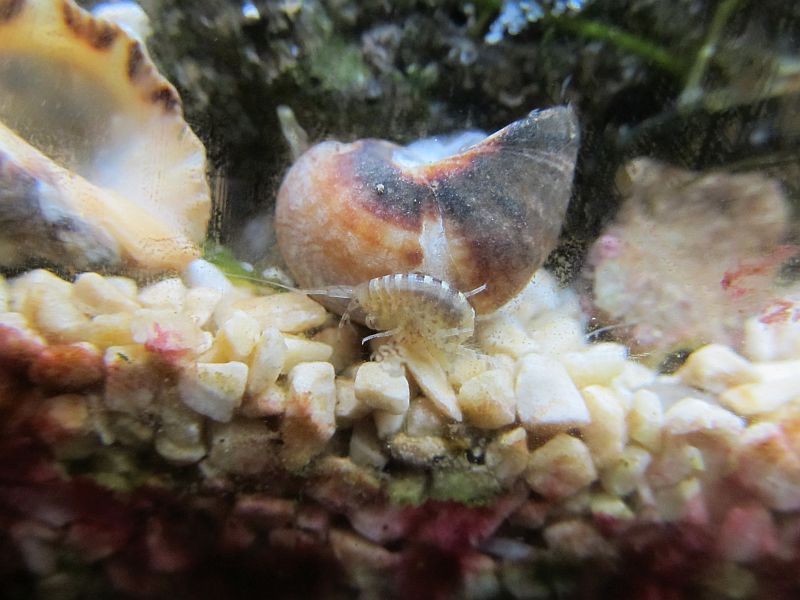 Sie sitzen auf dem Stein mit den Krustenanemonen und Kugelalgen. Mit einer Spritze mit Essigessenz rückte ich ihnen zuleibe.
