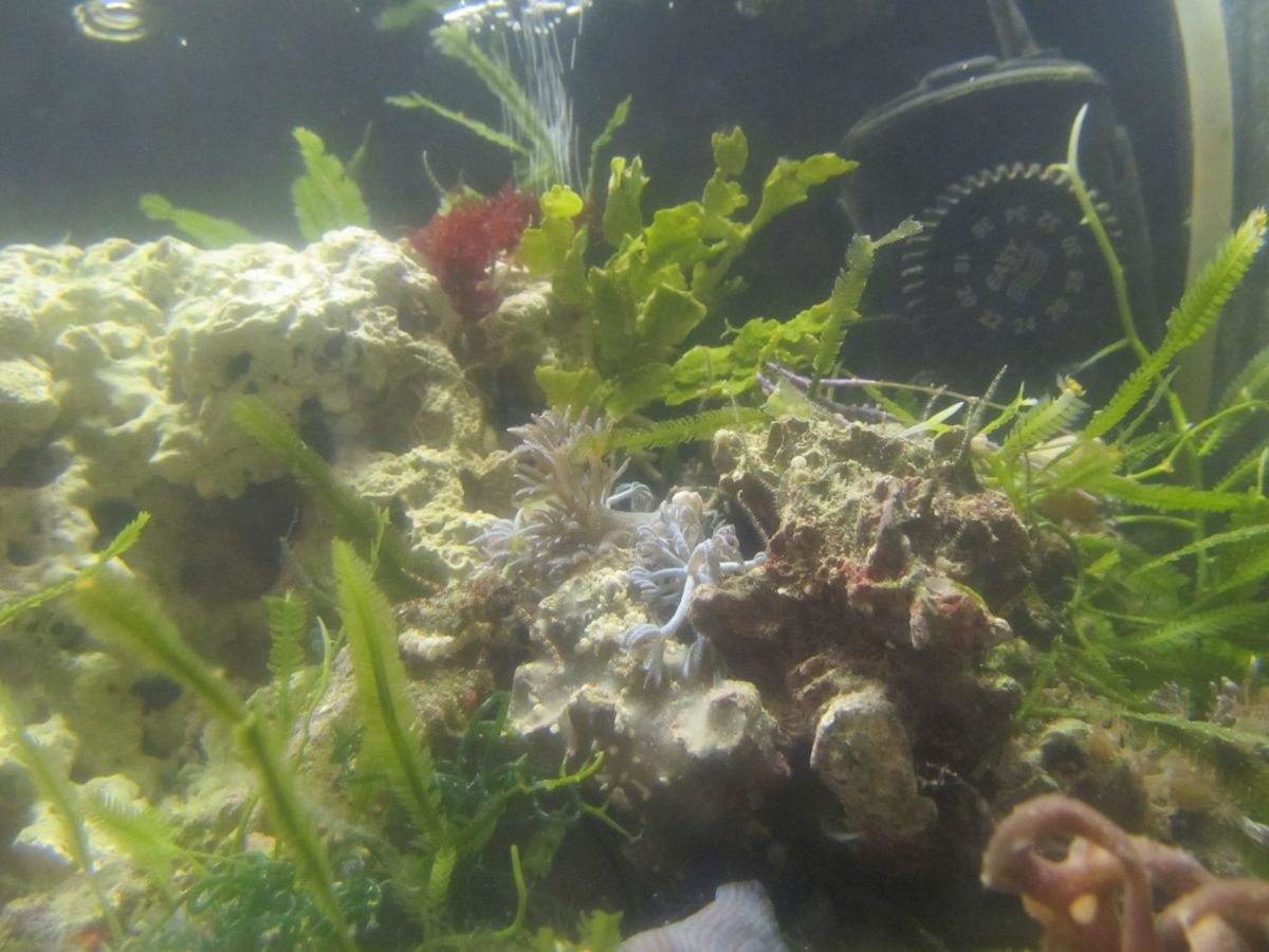 Begonnen hat es für mich aber erst mit den 2 kg LS, die ich abends am 29.12.2012 in das Becken setzte. Dabei lernte ich gleich, das die salzige Aquaristik ungleich teurer ist als Süsswasser-Aquaristik. Noch ein paar Brocken Totgestein, ein Heizer und einen Luftheber angeschlossen und los ging es.