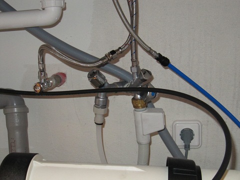 So sehen Zuleitung und Abwasserleitung aus der Nähe aus: