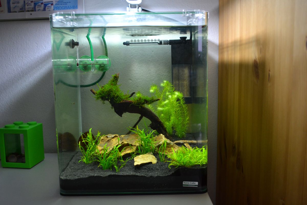 Ich habe noch 2 Seemandelbaumblätter hinein, täglich 3 Tropfen Tagesdünger hinein. Achja das Moos ist noch etwas gewachsen und die Lilaeopsis.