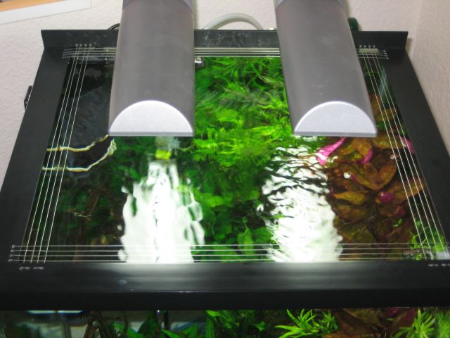 Es handelt sich hierbei um ein 50l Scaper's Tank von Dennerle (45 x 31 x 36 cm). Bestückt ist das Teil mit einem Rucksackfilter von Dennerle (Nano External Skimfilter), einer LED-Lampe, Dennerle Kies in schwarz, Depot-Mix, diversen Pflanzen, Dennerle Bio CO2 und eine mittelgroße Wurzel kommt auch noch rein sobald sie mal unten bleibt 8o (wird gerade gewässert). Ach ja, und 5 Geweischnecken tummeln sich auch schon in meinem Becken! 8o