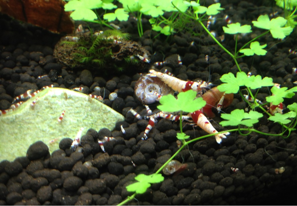 wie bereits gesagt, finde ich die zwei Becken nebeneinander echt toll, das hat was. Und die Tiere haben richtig gute Farben, gerade das tragende Weibchen hat ein tolles Weiß! *wo die wohl her sind?* :D