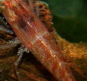 ich wollte euch mal meine "neu Entdeckung" zeigen. Meine "Musketier- Garnele". Leider hatte diese gezeigte Garnele bei der Aufnahme einen starken Saugwurmbefall. (wurde aber erfolgreich behandelt). Ich finde diese Erscheinung aber sehr Interessant. Wenn sich das weiter vererben würde...