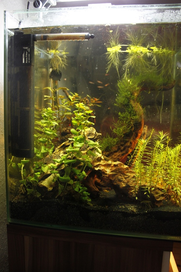 4 Wochen sind vergangen, seit einiger Zeit haben sich auch 12 Moskito-Rasboras im Becken angesiedelt und denen geht es super. Sind echt quirlig!