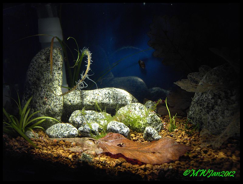 Seit etwa 4 Wochen auch gefiltert, allerdings mit Schaumstoffmatte, Kieselalgen auf dem Rückzug.