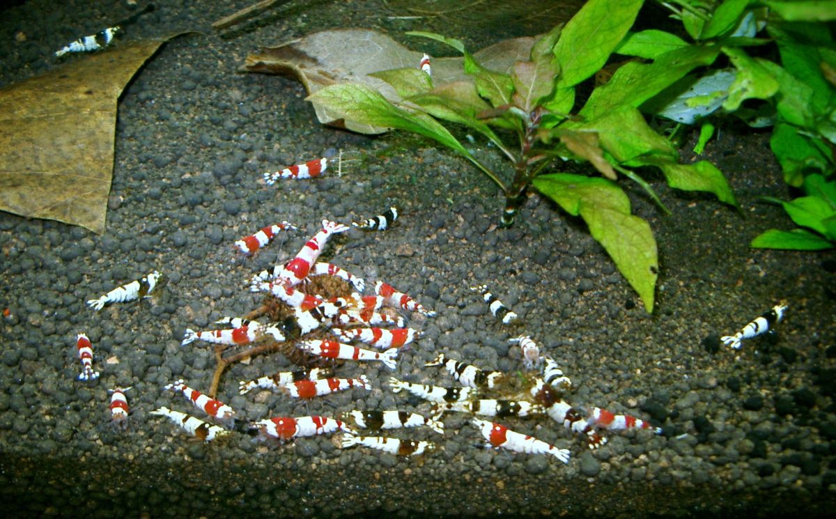 Hinzugesetzte Jungtiere aus anderen Becken, ab ca 0,5mm Größe, wachsen problemlos auf.