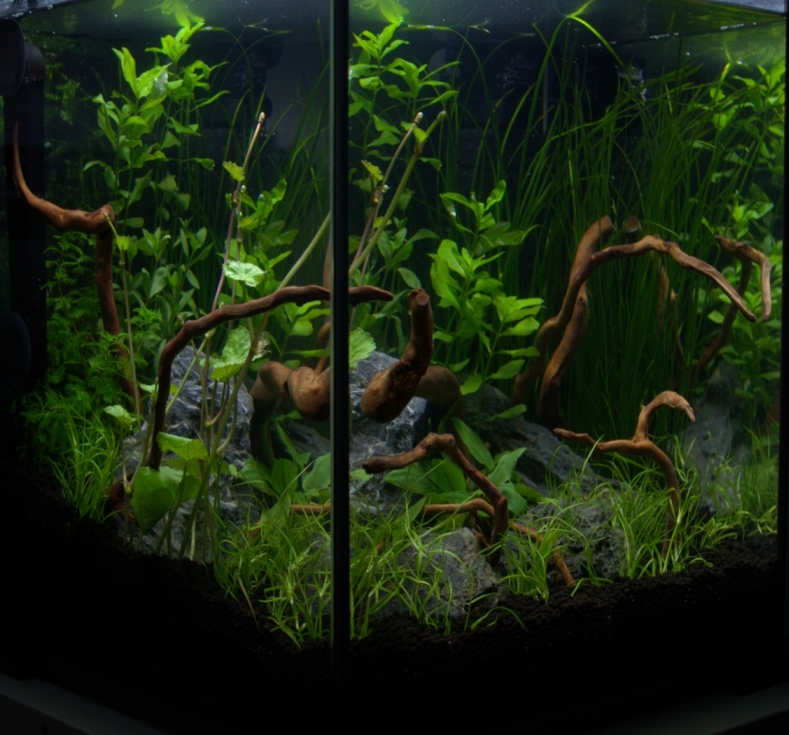 Auf die Oberfläche kommen demnächst noch ein paar Wasserlinsen und ein paar Pflänzchen Froschbiss.