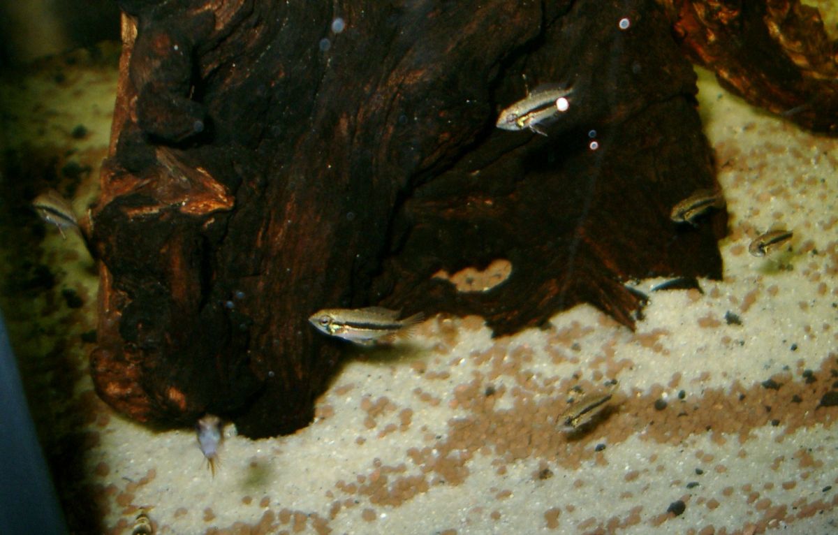 Also , bei vielen Apistogramma Arten helfen die älteren Geschwister beim Baby hüten...