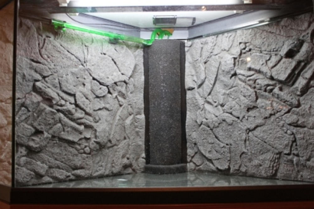 Hier wächst in einem 300 Liter Becken auf einer künstlichen Steinrückwand, eine Rotalge namens Thorea ramosissima.