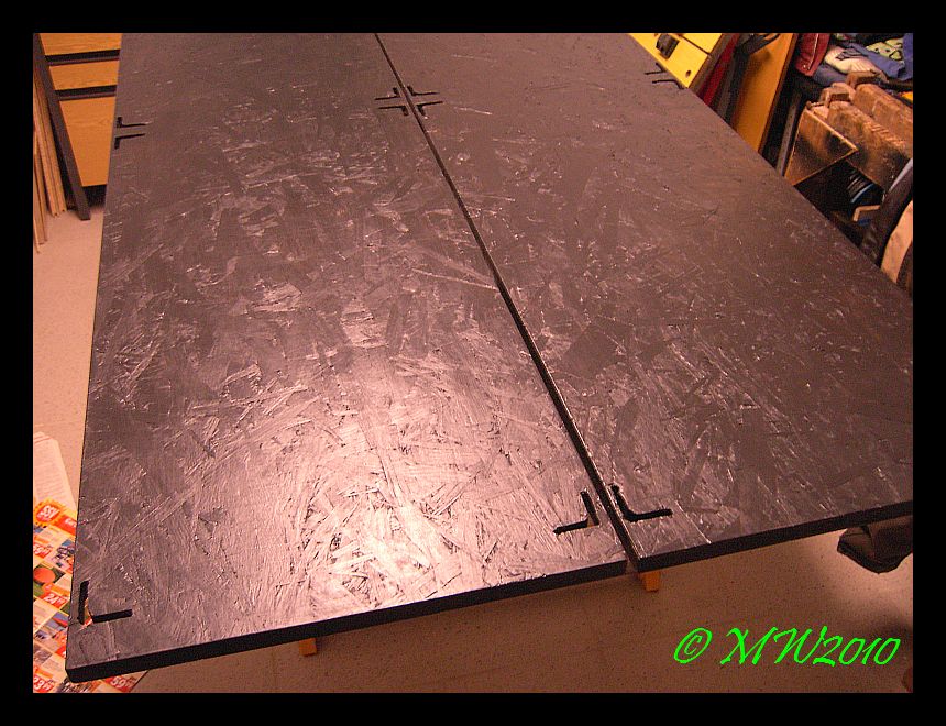 Das in die Bretter so Ausspaarungen für die Holme sind, muß ja nicht sein..die hatte sich mein Schatz in den Kopf gesetzt und mal einen Abend mit den Schraubenzieher rumgepöpelt...Man kann die Bretter auch genausogroß wie die Orginalbretter Sägen und einfach reinlegen.
