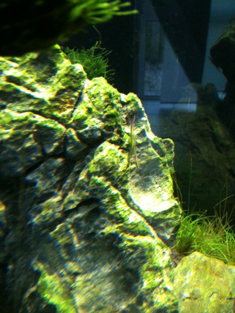 was soll ich tun? hier mal ein foto, ihr seht eine garnele auf dem sein sitzen. das foto ist nicht das schärfste aber man sieht ganz gut die grüne lage :( WW wurde mittwoch 50% gemacht.