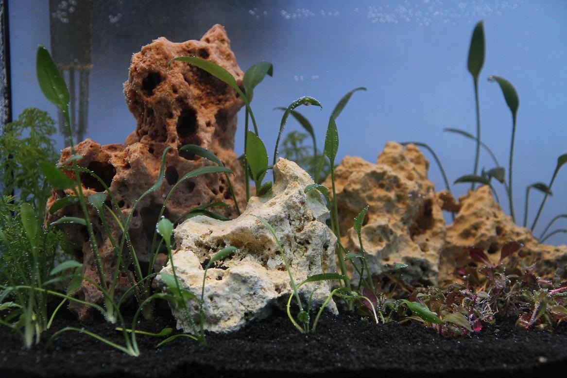 und vor dem rechten Stein das Rote ist Alternanthera reineckii mini - keine Ahnung, ob sich das halten wird...