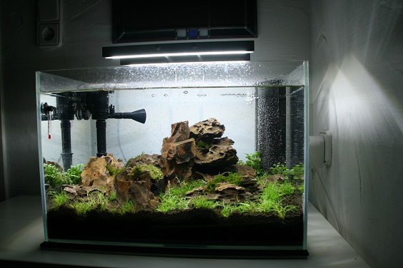 an dieser Stelle möchte nun endlich auch ich ein paar Fotos von meinem neuen Becken einstellen. Es ist ein Glasgarten 45x30x30 Weißglasbecken und soll ein neues Zuhause für PRL werden. Es läuft jetzt seit letztem Donnerstag. Seit dem letzten Wasserwechsel brummt der Aquael 500 leider ziemlich. Für Tipps, wie ich das beheben kann, wär ich euch sehr dankbar. Aktuell bin ich auch noch auf der Suche nach einer kleiner CO2-Anlage, die aber die Optik nicht kaputt machen soll. Für mich ist dieses Becken in mehrfacher Hinsicht absolutes Neuland: mein erstes Becken mit Bodenfilter und mit HMF, bisher ohne CO2, mit viel Drachensteinen und nur niedrigen Pflanzen / Bodendeckern, so dass ich gespannt bin, was noch alles auf mich zukommt.