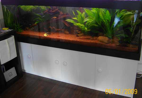 So gegen Weihnachten 2012 war es soweit. Alle Welse waren veräußert und Vati konnte losziehen und einkaufen bzw. online bestellen. Die Entscheidung des Bodengrundes viel auf 100kg Blaubasaltsplit 1-3 mm. Da wir seiner Zeit recht gute Erfahrungen bei den Sulawesigarnelen und Neocaridinas gemacht haben und die Farbe uns gut gefiel, entschieden wir uns, nicht zuletzt des Preises wegen, dafür. Unterhalb des Basaltsplit kam eine dünne Schicht aus Lavasteinen 10-15mm Körnung um für ein wenig Wasserzirkulation zu sorgen.(Hoffe ich)