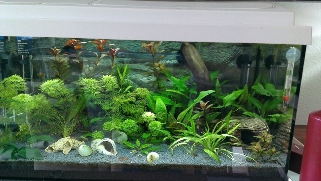 In dieses Aquarium sind dann 50 Red Fire / Sakura , 3 Ancistrus und 4 Armanos eingezogen.