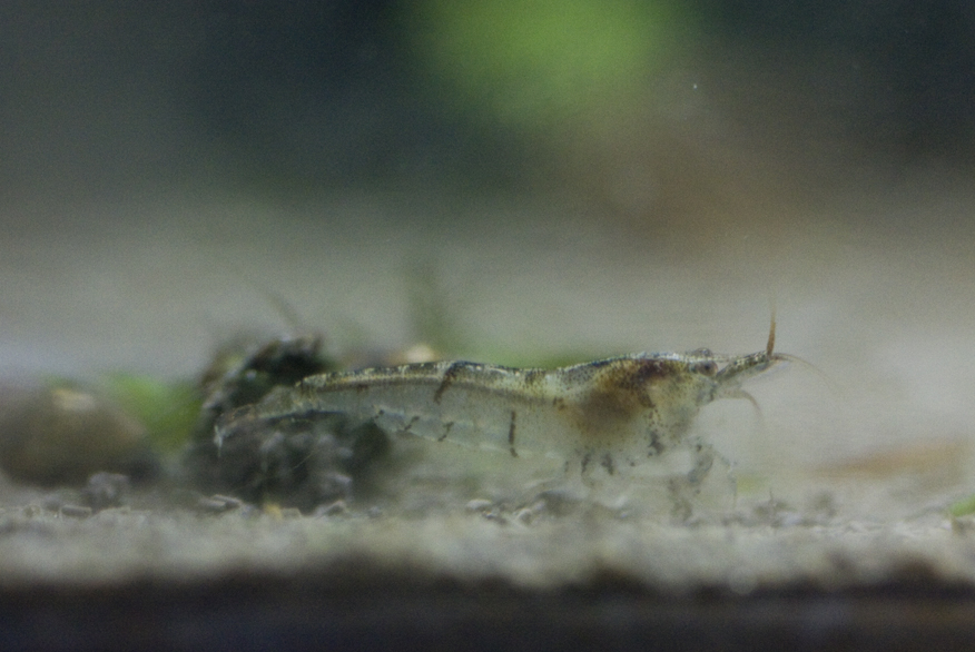 Hier mal zwei Bilder von meine Neodame "Mutti", die so heißt, weil ich sie tragend gekauft habe. Sie ist farblich sehr flexibel, wie sich das für Neocaridina davidi Wildform gehört.