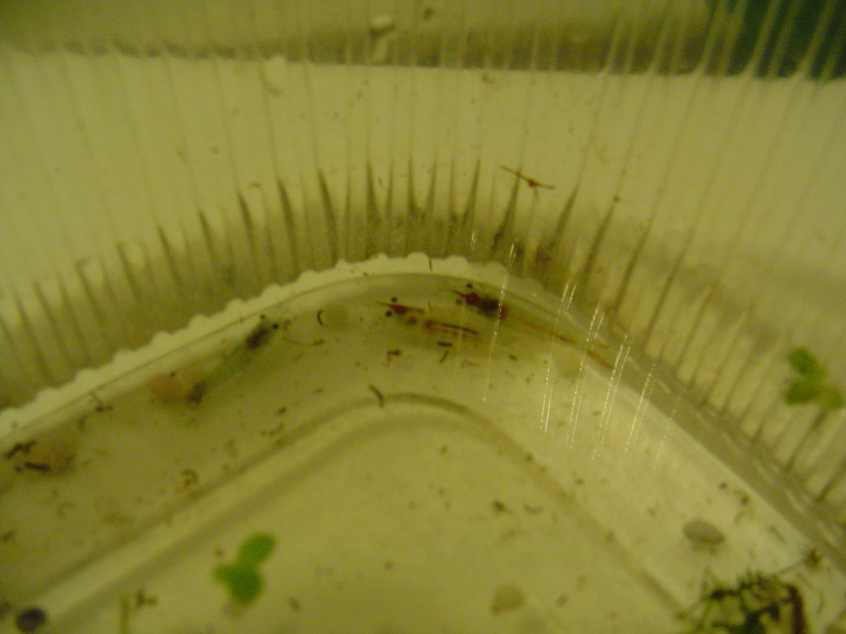 @miiro: Eine Red Bolt schließe ich mal auch aus, weil, wie @DennyK schon geschrieben hat, die Garnele ist, bis auf die markante Stelle am "Kopf", die übrigens bei allen vorhanden ist und den roten Streifen am Schwanzfächer, der nur bei einer vorhanden ist, völlig transparent.