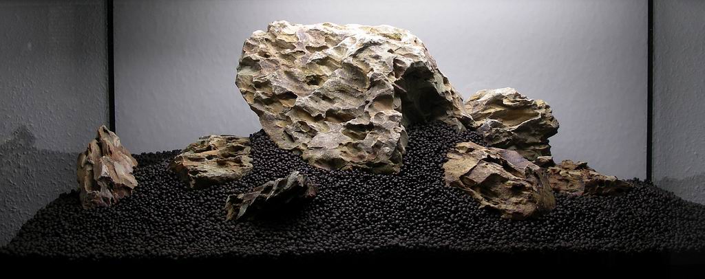 Zu den Steinen: ich würde die Strukturen und somit die Steine auf keinen Fall zu symetrisch anordnen. Das wirkt meistens hingebastelt und unnatürlich. Vor allem im Iwagumi-Stil. Die Grundidee der Anordnung ist in dem Bild schon recht gut getroffen finde ich.
