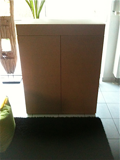 das neue becken rückt jetzt näher. ich freue mich schon sehr darauf. es ist angekommen, der unterschrank aber noch nicht ganz fertig. ich habe selbst einen unterschrank im ADA stil aus MDF platte gebaut. die maße des schranks 80x40x100, ihr seht den schrank einmal im rohzustand mit teilfertigen kanthölzern zur verstärkung und einmal im fertig abgeschliffenen zustand. innenaufnahmen folgen nach dem streichen. ich hoffe, den schrank am wochenende fertig zu haben, so dass das becken eingeräumt und bepflanzt werden kann. anbei auch ein foto des iwagumi layouts aus drachenstein...das wird bestimmt schön :D