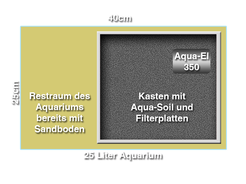 Nun läuft das für den Bodenfilter bestimmte Becken schon und ist auch eingefahren. Deshalb kam bei mir die Frage auf, ob man nicht einfach einen Bodenfilter in einem Kasten, der mit dem Soil gefüllt ist, einfach in das Becken setzen könnte... Ich habe jetzt zwar noch keine Idee, was es für ein Kasten (Glas oder Kunststoff) wird aber die Komplette Bodenfläche wird dieser natürlich nichr einnehmem.