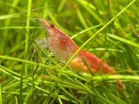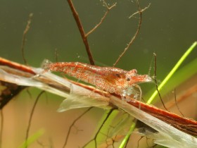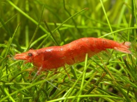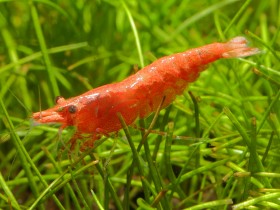dunkelrotes Weibchen mit wenig Rückenstrich und dunklen Augen