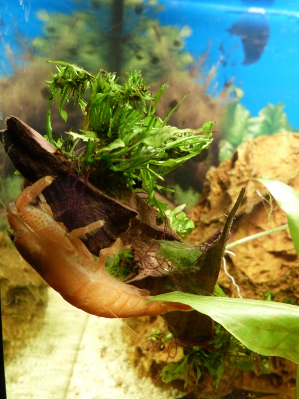 Lebt in einem speziellen Fächergarnelenbecken mit Gabuns und Molukken zusammen.