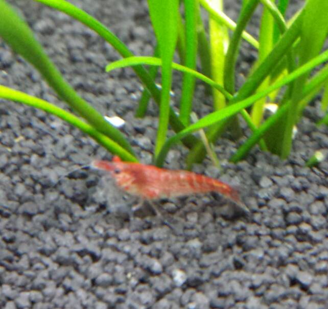 Hier mal wieder ein kleines Foto - Update. Die Garnele rechts im Bild ist momentan die am stärksten gefärbte in meinem Becken. Auch wenn ich nach wie vor optimistisch von, das die anderen auch noch kräftig an Farbe zulegen werden. Ist ja noch klein, die Meute. 8o