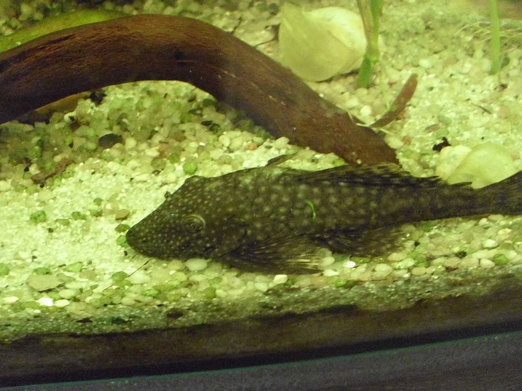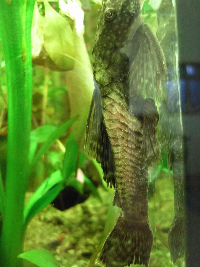 Sie lebt zusammen mit Platies, Amanogarnelen und einer Halsbandgarnele in einem Gemeinschaftsbecken. Die Temperatur beträgt 25 Grad.