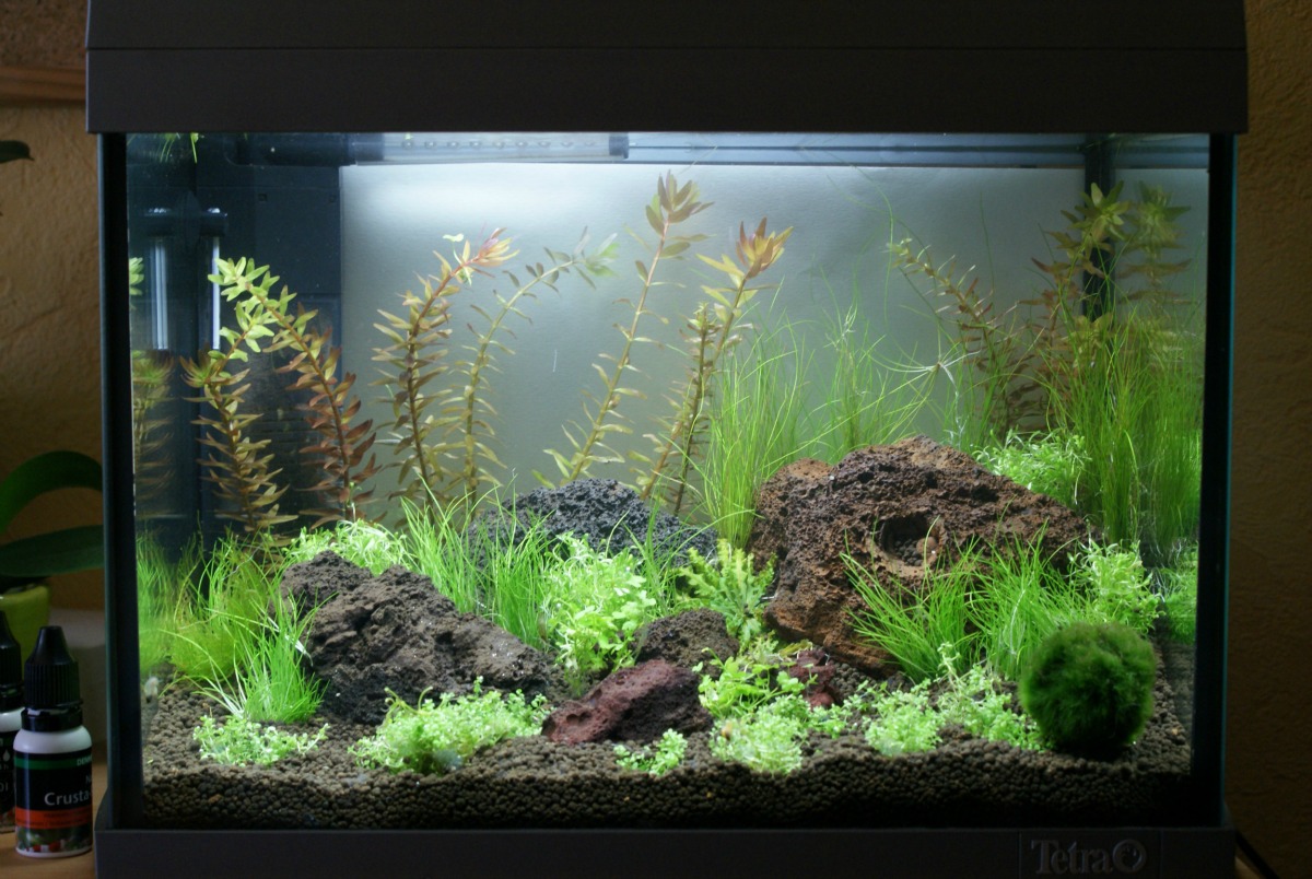 Nachdem mir aber mehrfach davon abgeraten wurde in so ein kleines Becken Fische reinzusetzen habe ich mir den Gedanken schnell wieder aus den Kopf geschlagen.