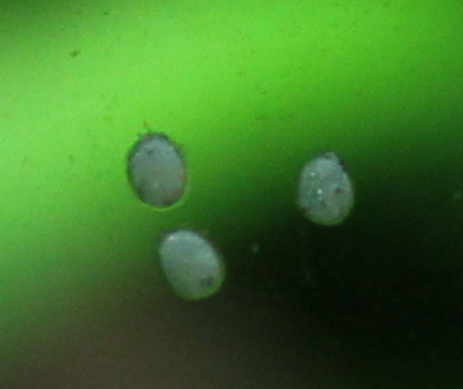 Die Eier hängen hauptsächlich an der hintern und linken Scheibe, aber auch ein paar an der vorderen Scheibe.