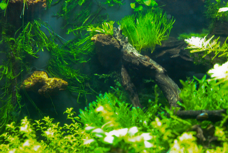 Im Hintergrund sind einige Stängel von einem schnellwachsenden Kraut zu sehen, da hab ich den Namen grade nicht zur Hand, ich meine es ist eine Cabomba-Art.
