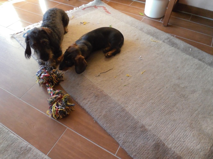 hier mal unsere Terrorstisten (einer sitzt mir gerade auf dem Schoss und versucht mitzuschreiben) Igor ist 31/2 Jahre alt und kommt aus einem Tierheim un Ungarn, Nitro ist 4 Monate alt und kommt von einem Züchter.