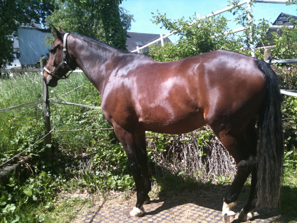 Er ist mittlerweile wirklich, wirklich brav geworden, lässt sich nun auch vom Stallpersonal prima händeln und brummelt sogar dem Sattel freudig entgegen. Wir kämpfen sehr erfolgreich gegen eine beginnende Arthrose, der erste und einzige Schub war im Sommer letztes Jahr.