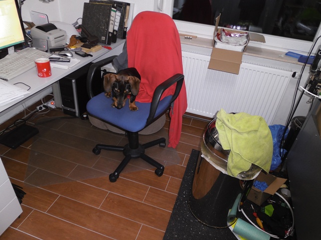 es ist schon ein paar Tage her und Nitro ist gewachsen und immer frecher geworder. Kaum ist man 5 Minuten aus dem Büro, dann wird einem der Plazt streitig gemacht. Der ist wirklich von allein auf den Stuhl gehommen , aber als er wieder runter wollte, nun man sieht es vielleicht.
