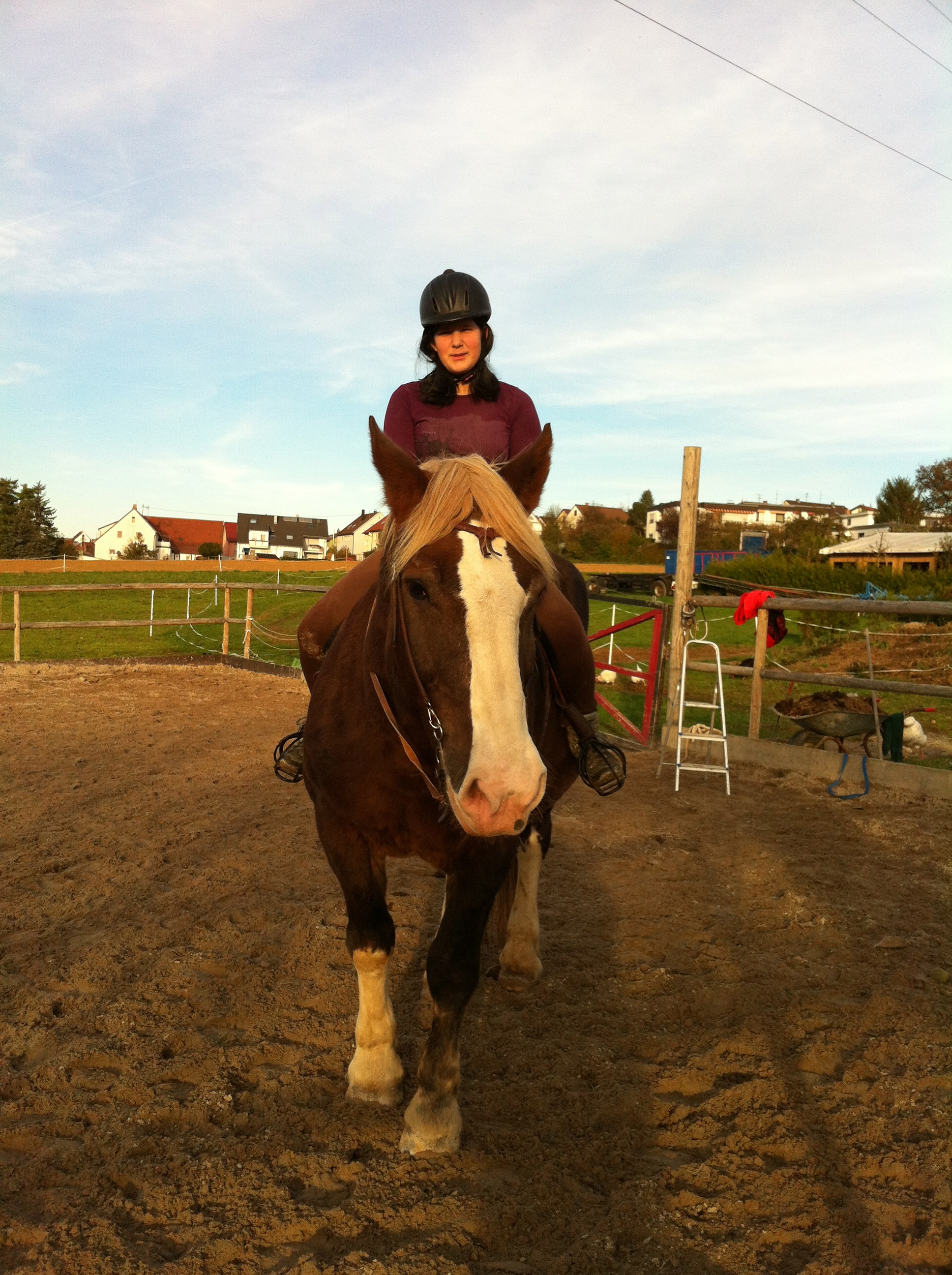 Angefangen hat's vor fast zwei Jahren, da kam ein neues Pferd auf den Hof, wo unsere Tochter reitet - ein Kaltblut, geritten und gefahren, aber eigentlich als Kutschpferd angeschafft. Leider hatte die Besitzerin dann doch nicht wirklich Zeit für ihn, und als der Tag kam, da Hannah für eine Reitbeteiligung reif war, bekam sie ebendiesen Kalti - erst ziemlich widerwillig. Er ging nämlich nicht wirklich gern unterm Sattel und fand reitende Menschen und überhaupt den Schulbetrieb mit wechselnden Reitern echt doof, aber Hannah hat ihm mit Geduld, Spucke und viel Bodenarbeit beigebracht, dass es auch ganz nett sein kann, mit dem Mädchen seiner Wahl durchs Gelände zu schlampern oder auf dem Reitplatz zu arbeiten. Für Hannah wäre er durchs Feuer gegangen, die beiden lernten einander lieben.