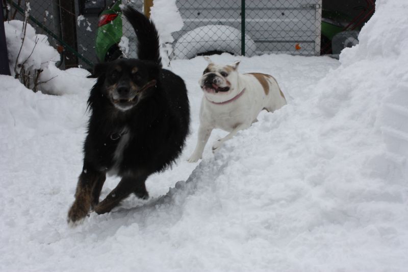 Das sind Tiger und Krümel unsre 2 Kater im Schnee. Beides sind Tierheimkatzen und nicht verwandt, kommen aber gut miteinander klar.