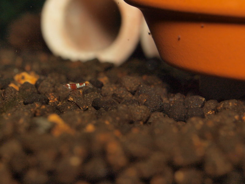 Die Tiere halte ich in der Zwischenzeit in einem 54er Zuchtbecken mit Enviroment Soil, Bodenfilter (Lufheber über Druckdose) und zusätzlichem HangOn Filter. Ich verwende auschließlich aufgesalzenes Osmosewasser mit einem LW ~220, KH0 und GH6. Als weiter Wasserzusätze verwende ich ab und an Black Water. Weitere Zusätze verwende ich nicht. Wasserwechsel gibt es je nach Bedarf, welche ich am LW ausmache innerhalb 1-3 Wochen mit bis zu 50%.