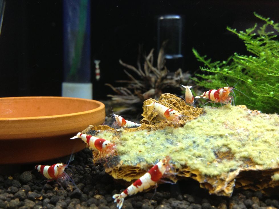 Nachwuchs ist im Moment reichlich vorhanden, wächst gut und ich habe nach meiner Ansicht kaum Ausfälle bzw. eine gute Aufwuchsrate. Dürfte so im gesamten aktuell ca. 100 Jungtiere mit ca. 10 mm sein, wohl eher mehr, da ich das Moos im becken nicht geschüttelt habe.