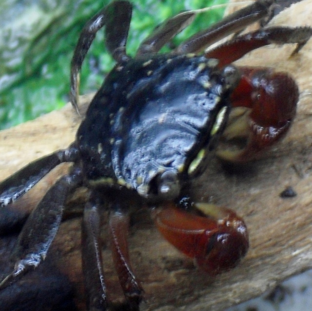 kleine schwarze Krabben mit roten Scheren bekommen, die alle nur ca. 1,5 cm Carapaxbreite hatten.